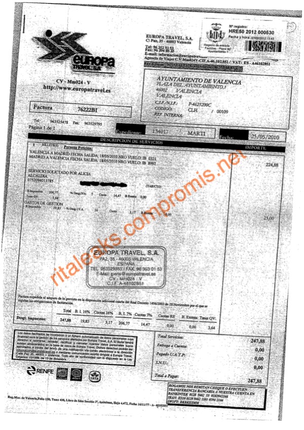| 420 | Range:0-100 | Rita Barbera Nolla | Madrid | Europa Travel S.A. | 2013320 20/3/2013 | 2013330 30/3/2013 | 90,14€ | Bitllet de tren | |